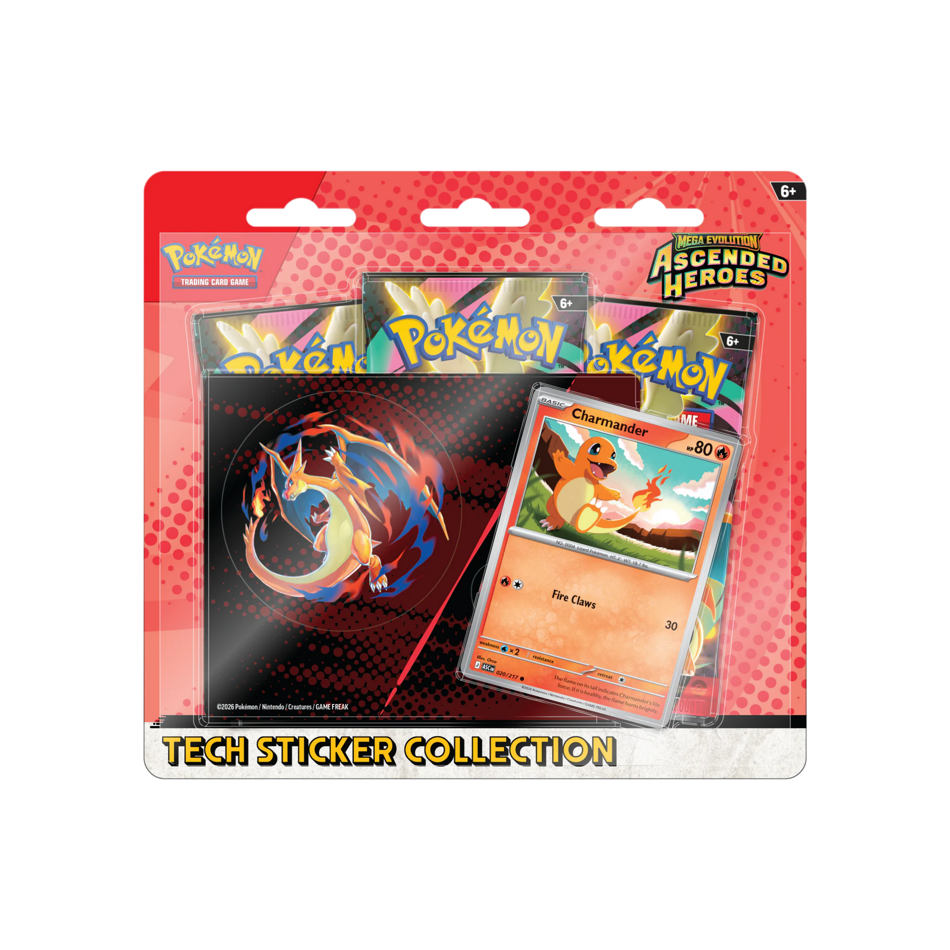 Esta colección Ascended Heroes Tech Sticker reúne componentes esenciales para jugadores y coleccionistas serios. Obtén una carta promocional exclusiva de Charmander, tres sobres Ascended Heroes para potenciar tu estrategia de juego, una lámina de stickers coleccionable de Mega Charizard Y , y un código para Pokémon TCG LIVE.